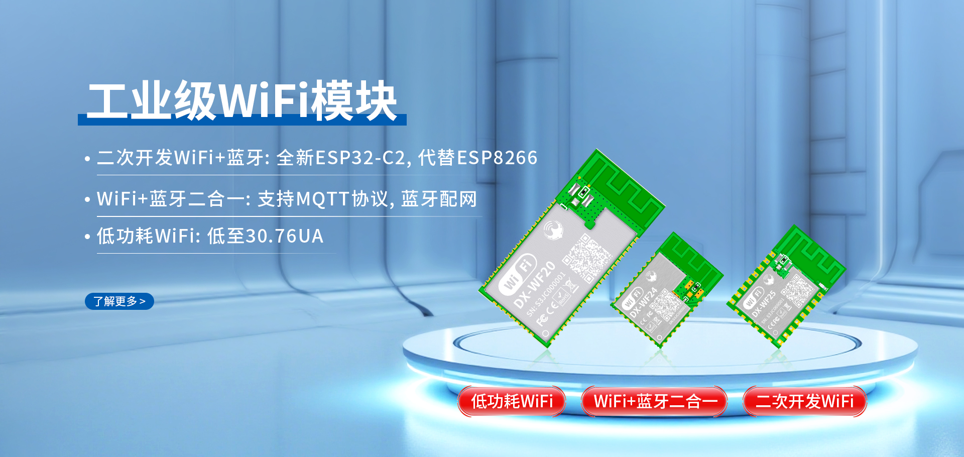 無線透傳WiFi模組,廣泛應用于通用低功耗IoT傳感器集線器,智慧樓宇,智慧農業等場景
